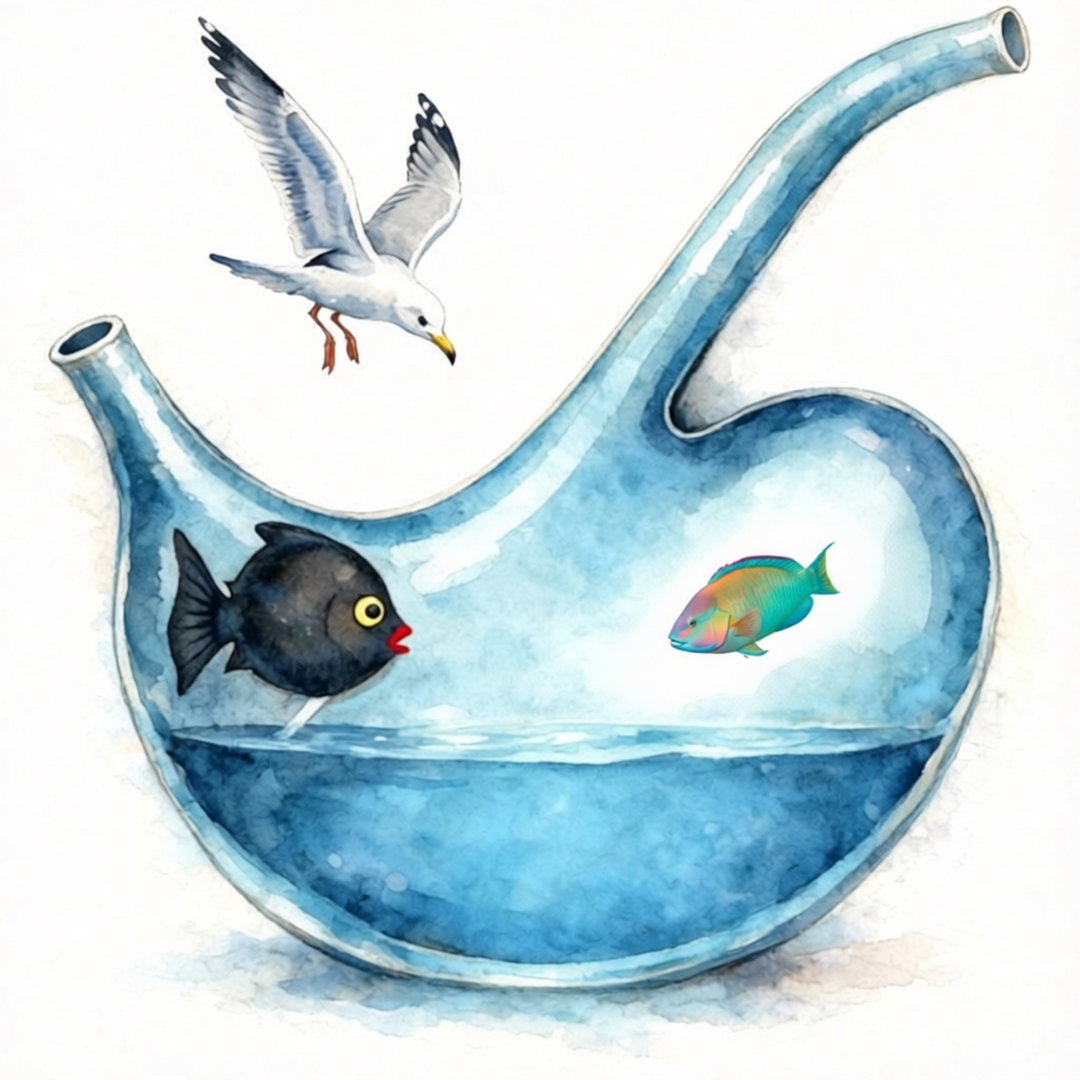 Le Petit Poisson Rouge hérite de ce courage mais le transforme. Il ne nage pas devant, il nage à côté. Il n'ordonne pas, il accorde. Le Poulpe devient stratège. Les Crabes gardent la mémoire collective. La Méduse filtre l'information. Car il a compris que la transformation sociale ne se fait pas en héros solitaire, mais en orchestrateur patient.
