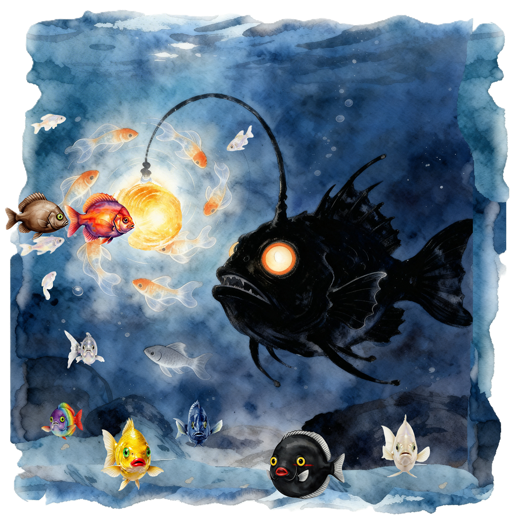 Un poisson émergea des ténèbres. Gris. Ses yeux, noirs — pas ceux de la profondeur. Ceux de quelqu'un qui a trop regardé.