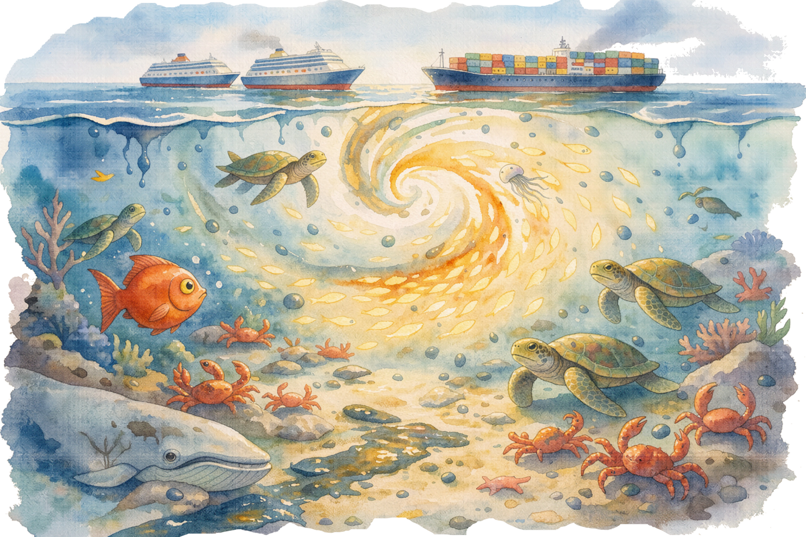 Le Petit Poisson Rouge hérite de ce courage mais le transforme. Il ne nage pas devant, il nage à côté. Il n'ordonne pas, il accorde. Le Poulpe devient stratège. Les Crabes gardent la mémoire collective. La Méduse filtre l'information. Car il a compris que la transformation sociale ne se fait pas en héros solitaire, mais en orchestrateur patient.